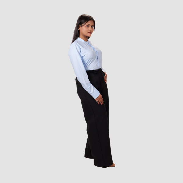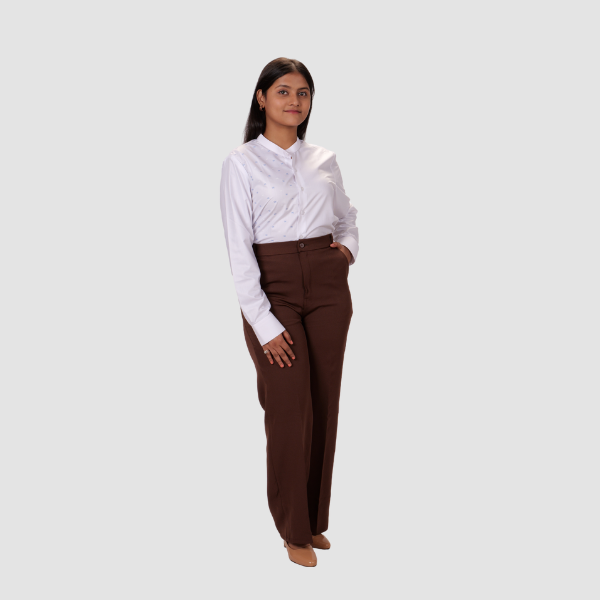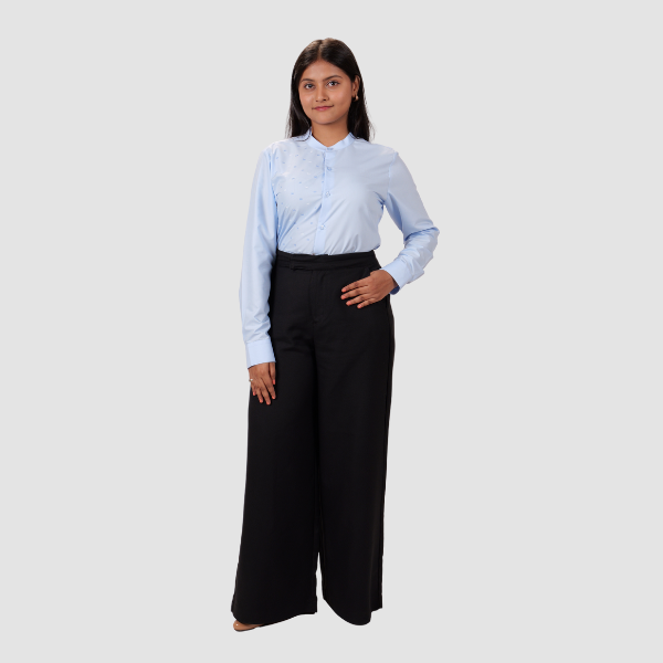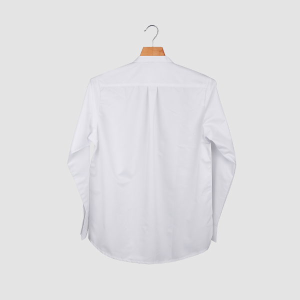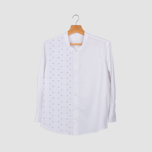A stylish mandarin-collar shirt featuring the Kotak infinity pattern on the right front panel for a refined and contemporary look. Perfect for professional settings and elegant everyday wear.